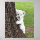 White lion cub hiding behind a tree. poster