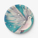 White little dove with ethereal wings on a blue background watercolor, this design features a beautiful white little dove with ethereal wings on a blue background watercolor.
