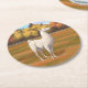 White Llama in Autumn Farm Pasture Round Paper Coaster