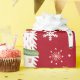 A festive pattern featuring cheerful llamas adorned with colourful gifts and holiday decorations. The lamas are set against a vibrant red background, interspersed with snowflakes and cactus plants. Each Llama sports a playful expression.