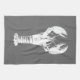 Hand towel in a digital sketch of a Lobster in white on a dark graphite grey / grey background