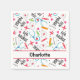 Create a coordinated party for a nurse with these napkins that can be customised with a name or other words for the event. The art includes words Love a Nurse, a stethoscope, colourful bandaids, a red cross, retro nursing caps, red hearts and white dots on a white background. The whimsy art Love a Nurse is original art by Phyllis Dobbs. The colours are turquoise blue, white, red, black, bright fuchsia pink, lime green. Fully customisable. Other colour backgrounds are available as well as coordinating products and party goods.