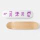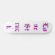 A white skate board with love struck writen on it in purple. By Love Struck ©