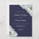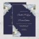 White Magnolia Elegant Floral on Navy Wedding Invitation