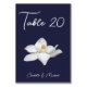 White Magnolia Elegant Floral on Navy Wedding Table Number