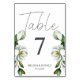 White Magnolia Floral Wedding Table Number Card. Personalise with your details easily and quickly, simply press the customise it button. Matching items to complete your event collection are available in our Zazzle store!