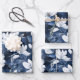 White Magnolia Pattern on midnight background, Wrapping Paper Sheet