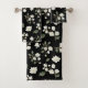 White Magnolia Watercolour Pattern Black Bath Towel Set