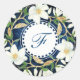 White Magnolias Monogram Initial Classic Round Sticker
