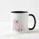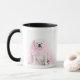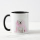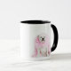 White male dog with pink boa mug