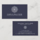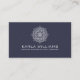 Elegant white mandala and small dots pattern on dark blue background. Customisable wedding planer business card template.