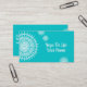 White mandala on turquoise business cards for a yoga instructor or other holistic practitioner.