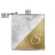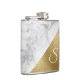 Stylish drinking flask done in a modern look of white marble on half the flask and gold foil look, on the other half. A white one letter monogram is ready to personalise. Lovely gift idea for her.
