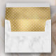 Elegant envelope featuring faux gold foil dots pattern on the inside and white marble texture on the outside.
