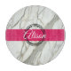 Trendy white marble natural texture, fuchsia pink frame, customisable girl's name. Minimal chic grey granite stone design.