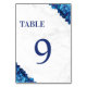 White Marble Floral Navy Blue Wedding Table Number
