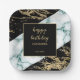 A modern, stylish and glamourous birthday paper plate. Black and shiny gold foil paint marble structure with white marble stone background. Customise it with your text.
