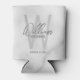 White Marble Modern Script Personalised Groomsmen Can Cooler