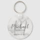 White Marble Modern Script Personalised Groomsmen Key Ring