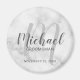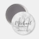 This magnet features personalised groomsmen's name in grey modern script font style and monogram in light grey modern script font style as background with title and wedding date in grey modern sans serif font style on white marble background.