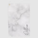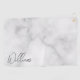 This design features personalised name in grey modern handwriting script font on white marble background.