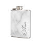 This design features personalised name in grey modern handwriting script font on white marble background.