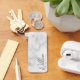 This design features personalised name in grey modern handwriting script font on white marble background.