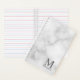 features personalised monogram and name in grey classic serif font style on white marble background.