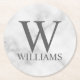 White Marble Personalised Monogram and Name Round Paper Coaster