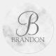 White Marble Personalised Script Monogram and Name Classic Round Sticker