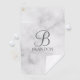 features personalised monogram in grey classic script font style and name in grey classic serif font style on white marble background.