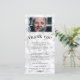 Thank you card for a memorial service featuring black text against a marble background in white and grey. Add a photo of your loved one.