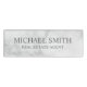 This name tag features name and title in grey professional serif font style on white marble background.