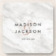 White Marble & Rose Gold Modern Wedding Monogram Coaster