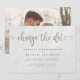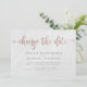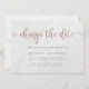 Yikes! Unforeseen circumstances are difficult to plan for, but with these wedding postponement cards you can easily let your loved ones know! Featuring a white marble background. The words "change the date" appear at the top in a faux rose gold foil script with sweet swirls. On the reverse there is a photo template for you to replace with your own. Click on "Personalise this template" and start adding your own details!