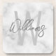 White Marble Script Personalised Monogram and Name Coaster