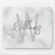 White Marble Script Personalised Monogram and Name Mouse Mat