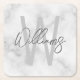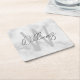 White Marble Script Personalised Monogram and Name Square Paper Coaster