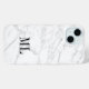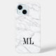 White marble stone Case-Mate Apple iPhone 15 case. Personalise with custom name initials.