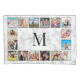 Create your own personalised 16 photo collage pillow case with your custom images and monogram on a stylish elegant white marble background.
