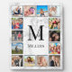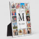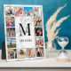 Create your own personalised 12 photo collage plaque with your custom images, monogram and name on a stylish elegant white marble background.