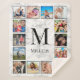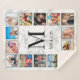 Create your own personalised 12 photo collage sherpa blanket with your custom images, monogram and name on a stylish elegant white marble background.