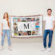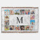 Create your own personalised 16 photo collage throw blanket with your custom images, monogram and name on a stylish elegant white marble background.