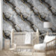 Luxury white marble wallpaper featuring golden details. Best solutions for the interior decor.