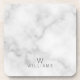 featuring monogram and name in grey modern sans serif font style on white marble background.