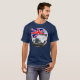 I give wanted to give this a 4 instead of a 5 because these Basic DARK T0shirts run unexpectedly SLIM or Narrow. Which is great if you do not have a potbelly, but I have a paunch. It isn't the shirt's fault that I've got a beer belly. The design and shirt itself is a quality cotton shirt. The color is more of a deep purple, but still a very pretty color. The Basic DARK T-shirts run a bit SLIMMER than the Basic Ts. The neck is a fraction narrower (or seems to be narrower) also. I'm a paunchy middle-aged woman and my neck is 12 inches (31cm) thick and the neckline fell about the same as in the photo of the man, and I had the desire to tug it a bit. So if you're a thick necked man or like loose shirts, be aware these are slimmer shirts. Once I get rid of my lockdown paunch it'll look great. The shirt washed well in cold water with no apparent bleeding. We don't have a dryer, so it hung dry. Did not shrink. Love the colors and the design. The design looks smaller on my shirt than it does on the model on-line. But still, it looks good on the shirt. The printing looks as it does on the model, just the size seems fractionally smaller. Washed garment in cold water, hung dry and design appeared unaffected.