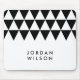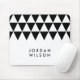 Minimalist white mouse pad featuring a modern black triangle pattern that you can personalise with your name.
