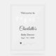 Bring a touch of modern elegance to your baby shower with this charming welcome sign. The delightful translucent acrylic finish creates a clean, sophisticated look, while a sweet clothesline with tiny baby clothes and a teddy bear adds a personal touch. Easily customise the mother-to-be's name, event date, and fonts to make this sign uniquely yours. This sign is part of the Minimalist Clothesline Baby Shower collection, making it easy to complete your party theme.