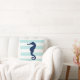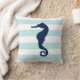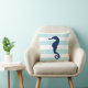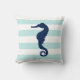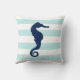 White Mint & Blue Wide Stripes Pattern Seahorse Cushion