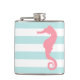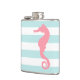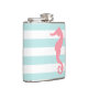 White Mint & Pink Wide Stripes Pattern Seahorse Hip Flask